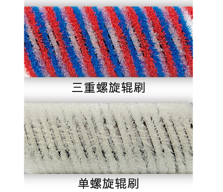 双螺旋辊刷的条刷有两条,呈左右对称状分布。这使得刷痕大大减少,实现了超强去除能力和高效清洁能力。